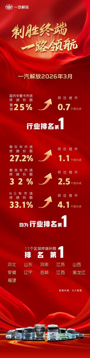 一汽解放3月份终端销量强势领跑