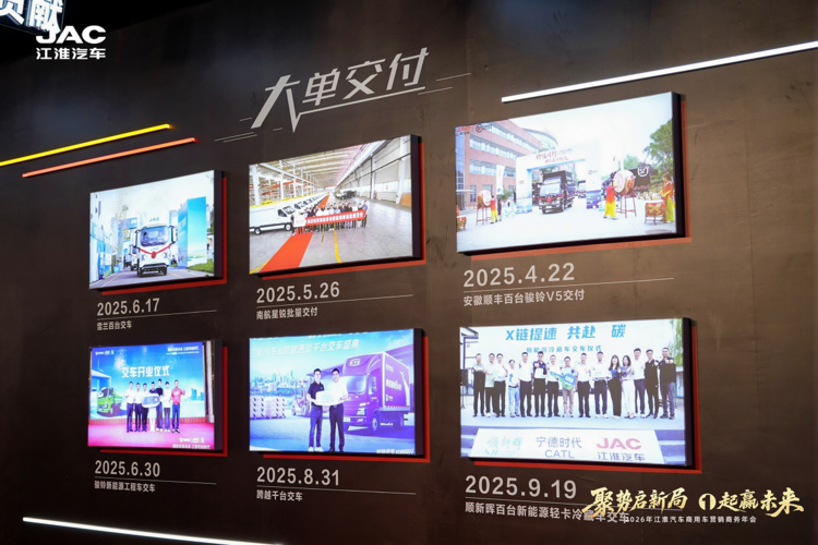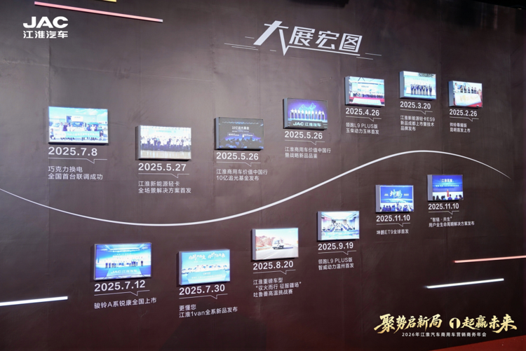 2025年,江淮商用车持续进行理念革新,向华为学习,外拓场景深耕用户、内强作风锻造铁军;进行组织焕新,优化组织结构,组建15支代表处营销团队,赋能终端销售;推动产品向新,以新能源、智能化双轮驱动重塑产品价值,携手顶尖伙伴推动传统动力进阶、三电系统升级;坚持运营启新,加快数字化转型,构建新媒体营销矩阵,打通全生命周期服务闭环,提升用户满意度与价值感;推动机制创新,秉持“以奋斗者为本”的分配与激励导向,向实干者倾斜。从轻型车到重型车、从卡系到 VAN 系,从燃油到新能源,江淮商用车精准洞察用户深层需求,以场景化思维重构产品逻辑、以定制化方案重塑价值标准,携手广大用户共建智慧绿色物流新生态,智领商用车领域高质量发展新征程。