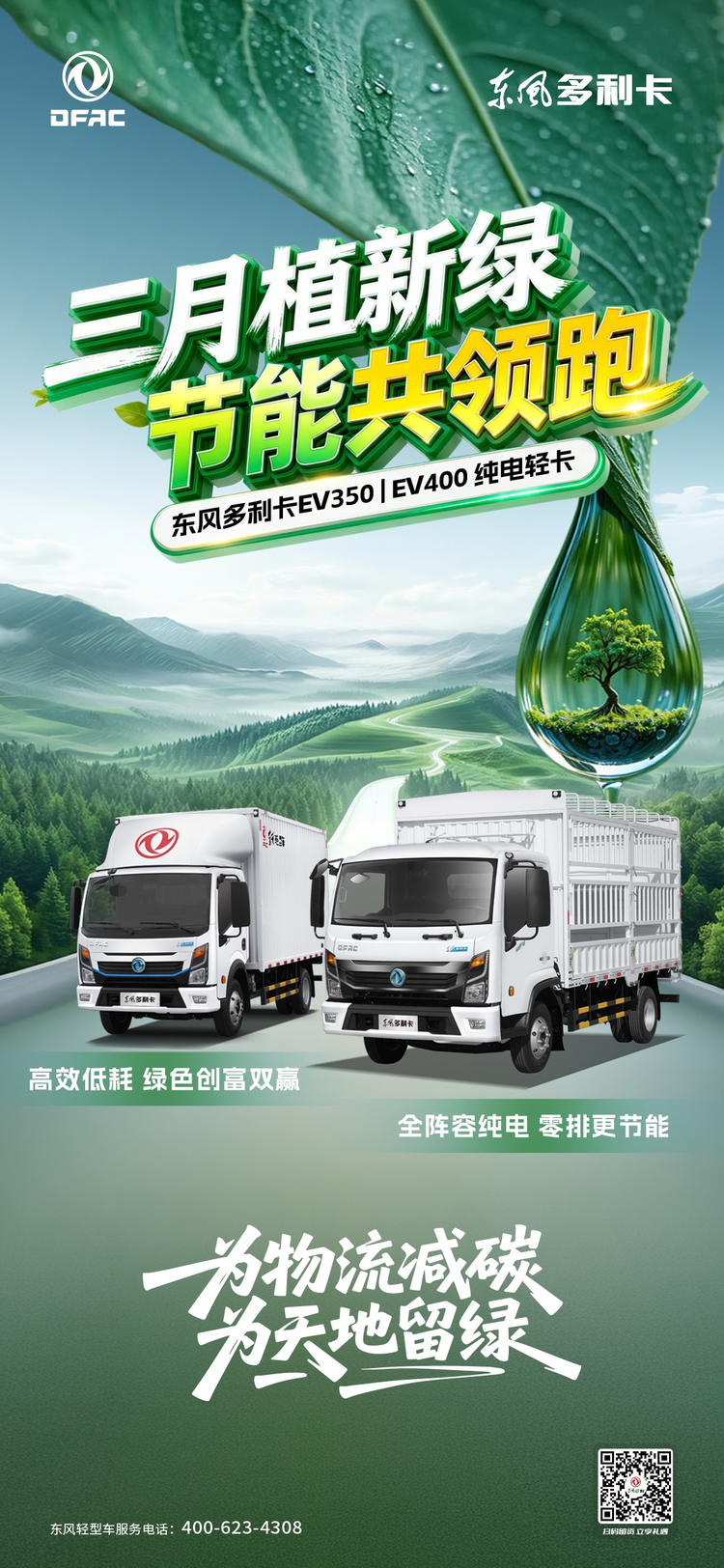 随着“双碳”目标的逐步推进和实施,中国对于绿色发展的理念正在落地。作为中国的重要假日,植树节不仅对于改善生态环境具有重要意义,同时更是中国绿色发展的重要象征。作为国内商用车的领军企业,东风股份始终积极响应国家政策,切实履行企业社会责任,把绿色发展融汇到企业产品当中,打造出了东风多利卡EV350、EV400“双冠”产品。