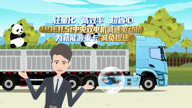 【视频】HDE11.5t中央双电机减速驱动桥 为新能源重卡减负提速